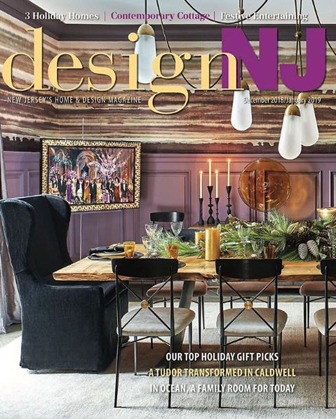 On the cover of Design NJ and in article, "Winter Wonderland," Interior designer Alyson Sugar featured Fade 7224 Sienna on White Manila Hemp in the dining room of a client's home.